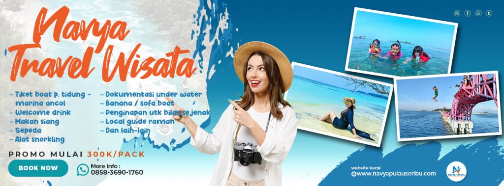 Navya Travel adalah agen wisata yang berfokus pada perjalanan ke Pulau Seribu, Indonesia. Kami menawarkan berbagai paket tur yang dirancang untuk memberikan pengalaman terbaik bagi para wisatawan. Fasilitas yang kami sediakan mencakup transportasi, akomodasi, serta kegiatan rekreasi seperti snorkeling, diving, dan island hopping. Komitmen kami adalah memberikan pelayanan terbaik dengan harga yang kompetitif, sehingga Anda dapat menikmati keindahan Pulau Seribu tanpa khawatir. Mari jelajahi surga tropis bersama Navya Travel!